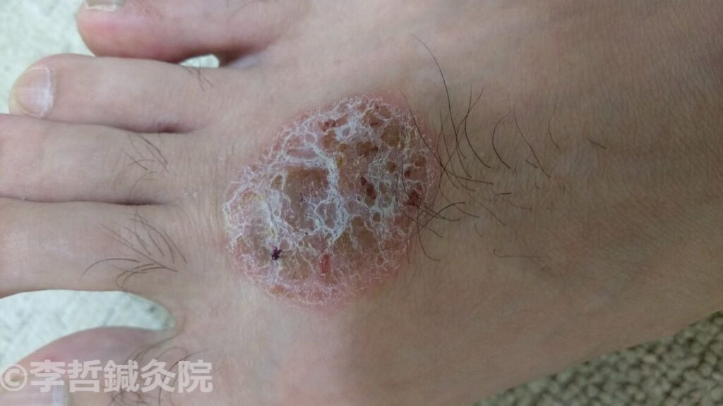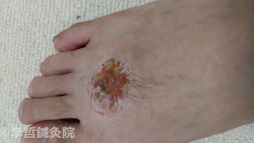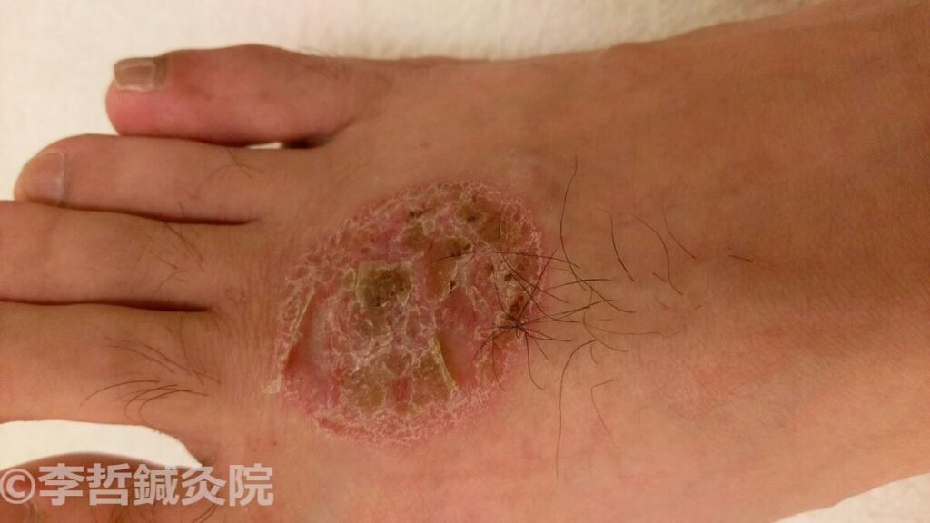 私自身の結節性紅斑(足の甲に赤痒い発疹)の鍼治療例です。(病名の診断は病院からもらってないけど、ネットで見てる限り近いかな?と勝手に病名を付けました。間違ったらごめんなさい。)