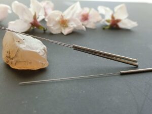 使用したツボは前回とほぼ同じ。鍼を回していると、彼女は「お腹が暖かくなった」と話しました。